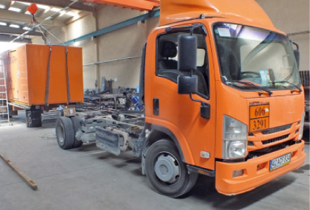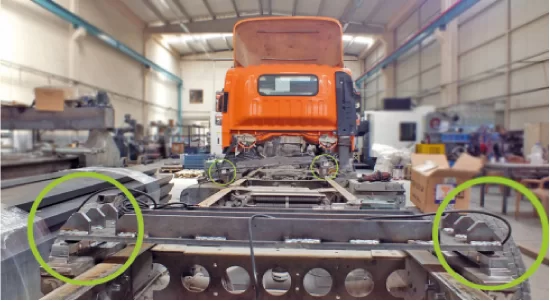 - En camiones y furgonetas, la seguridad del transporte está garantizada con células de carga y kits de montaje especialmente fabricados que se colocan entre el chasis y el remolque. Con la pantalla que colocamos en la cabina, conocerá su carga que verá al instante antes de salir al tráfico y estará protegido de posibles multas.